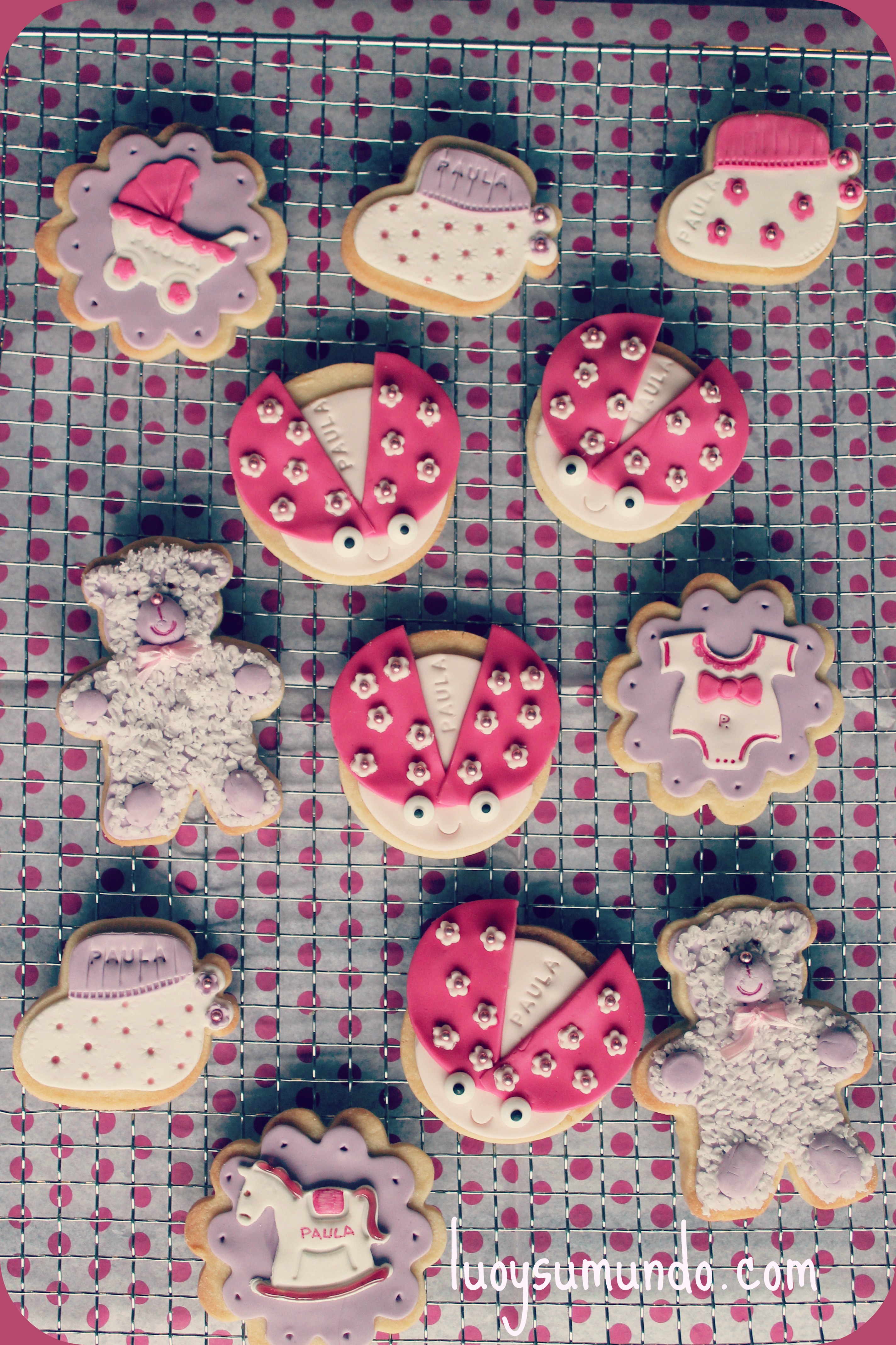 Después de mucho tiempo y muchos sentimientos encontrados, para Mayte y Pepo, hace unos días llegó Paula al mundo. Para celebrar que ya está aquí, uno de sus amigos, me pidió que les hiciera unas galletas para Paula, bueno, realmente para sus padres y amigos, que a Paula le queda tiempo todavía hasta que pueda comerlas.